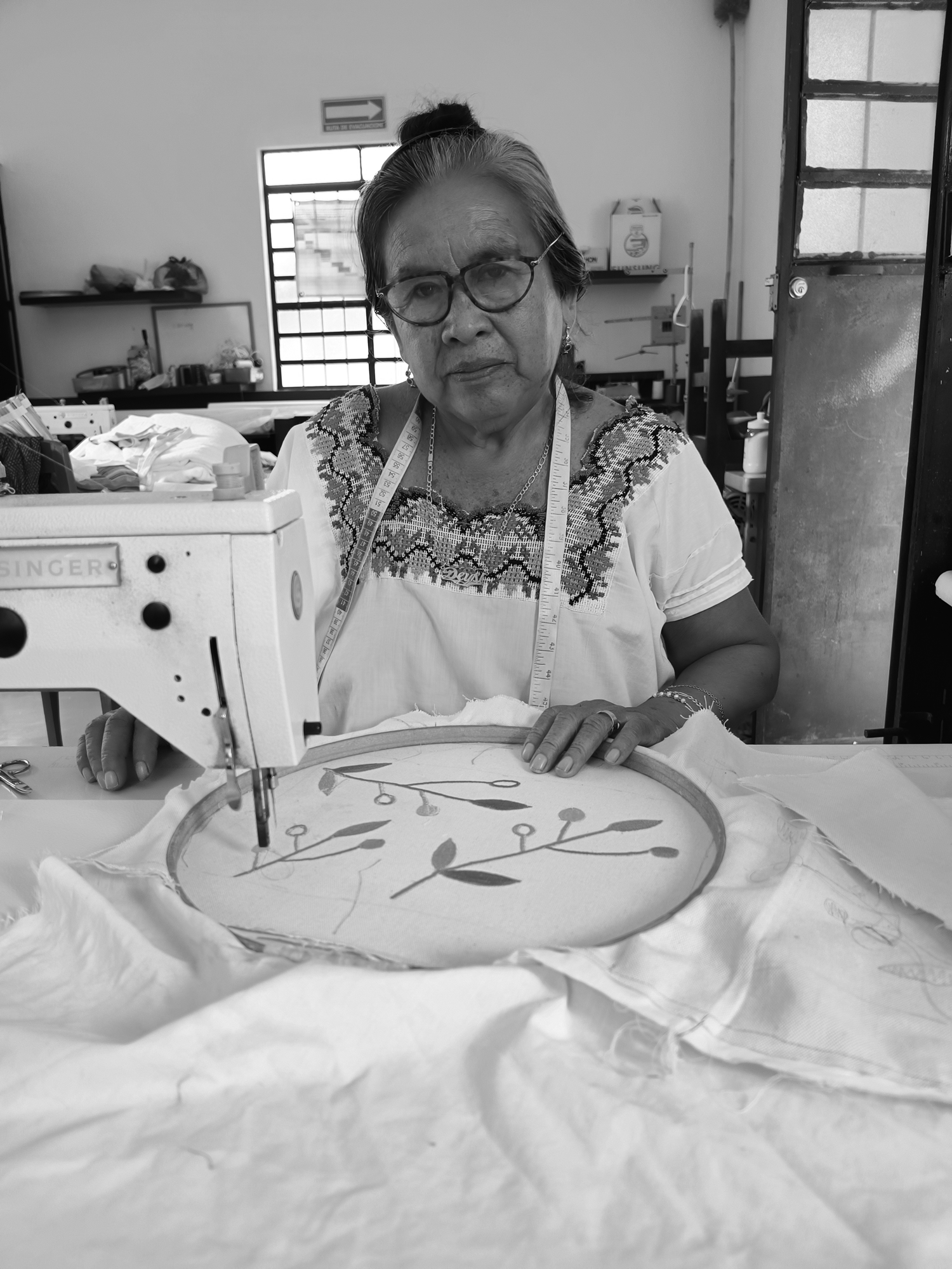 Esta colección celebra la polinización de la vida a través de las flores que las meliponas más aman: huaya, roble, kaatzim, lipia y amapola. Es creada por 28 artesanas de las comunidades de Santo Domingo, Tixcacaltuyub, Temozón Sur y San Antonio Chun, utilizando tres técnicas tradicionales que dan vida a cada pieza: bordado a máquina, bordado a mano y costura.