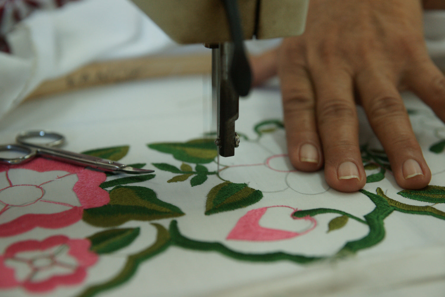 El bordado a mano se originó en tiempos prehispánicos en México y se transformó durante la época Colonial cuando se aprendió de las mujeres españolas la técnica de punto de cruz. Esta técnica se utiliza para bordar elementos de la naturaleza en colores llamativos.