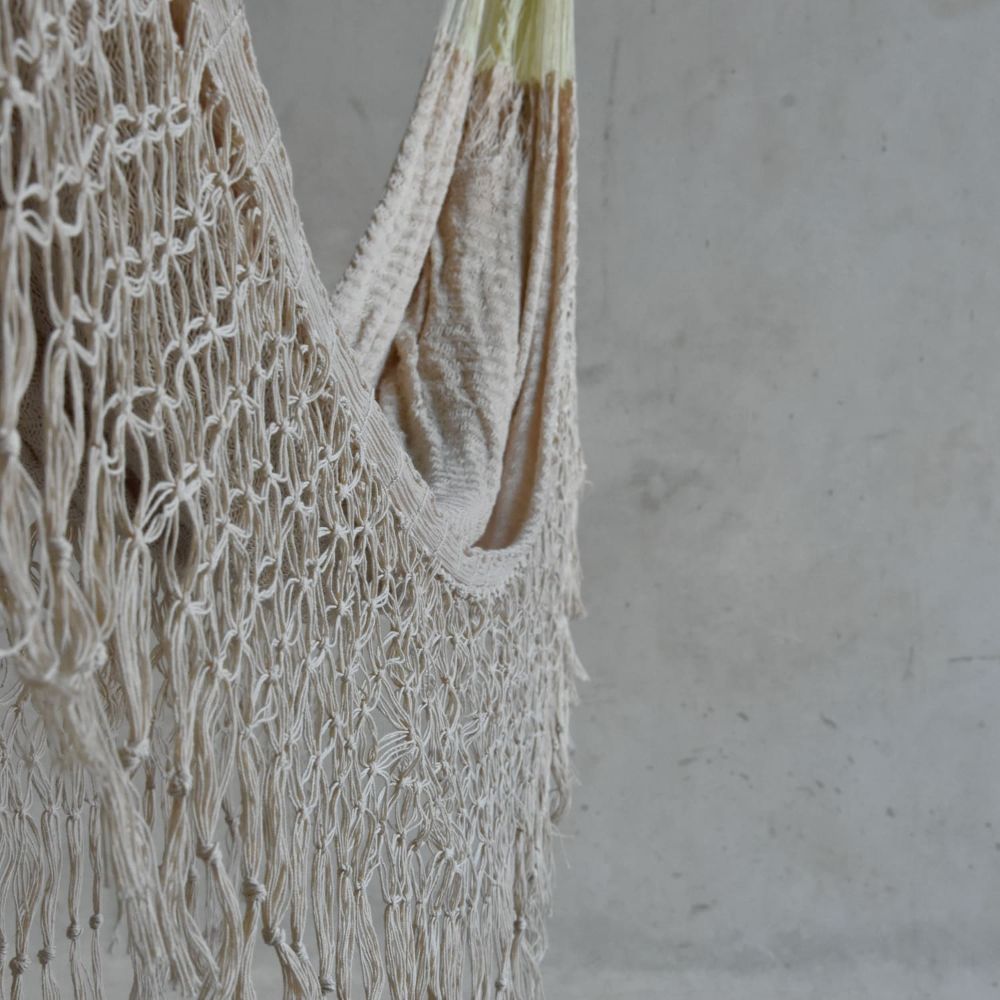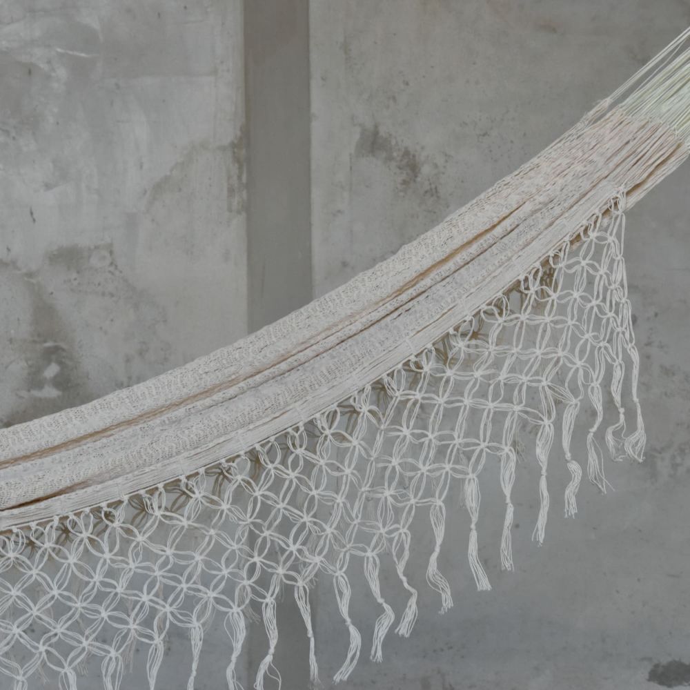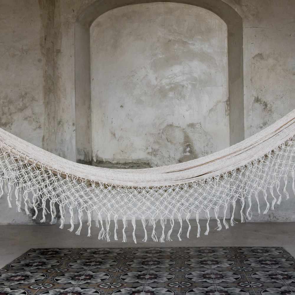 El urdido de hamacas es una técnica desarrollada en las Antillas. Con el tiempo, ha sido perfeccionada por las artesanas mayas hasta llegar a ser un arte meditativo, un vaivén experto de la mano con el hilo y fibras naturales como la sansevieria.